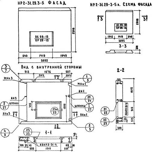 НР2-31.29.3-5л Наружная стеновая панель рядовая по Серии 1.132-1.