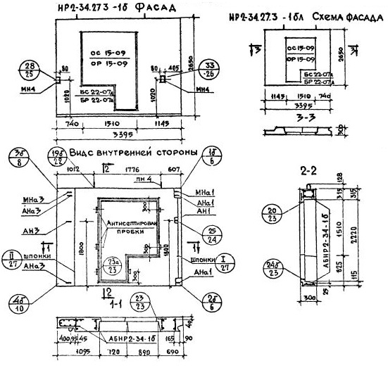 НР2-34.27.3-1бл   Наружная стеновая панель рядовая по Серии 1.132-1.