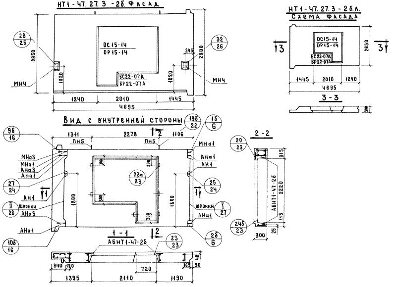 НТ1-47.27.3-2б Наружная стеновая панель торцевая по Серии 1.132-1.