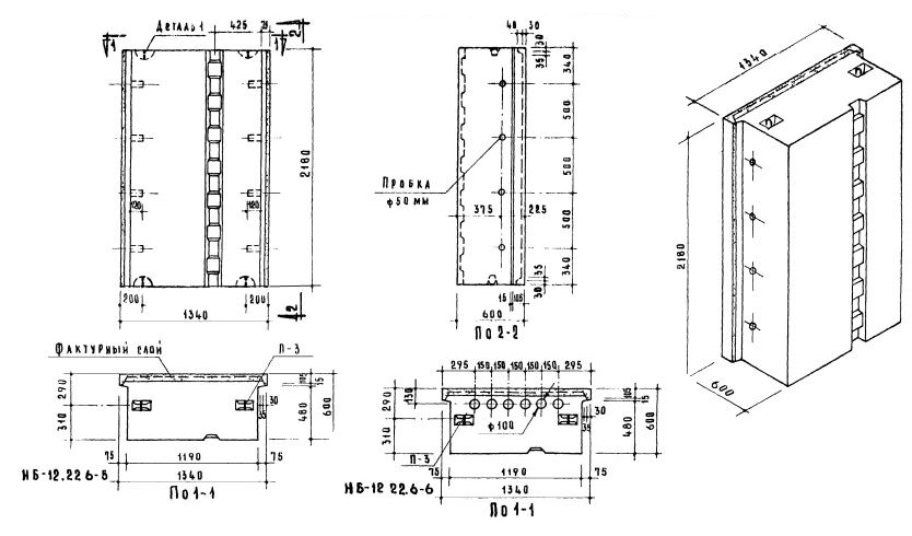 Стеновые легкобетонные блоки толщиной 60 см по Серии 1.133-1.